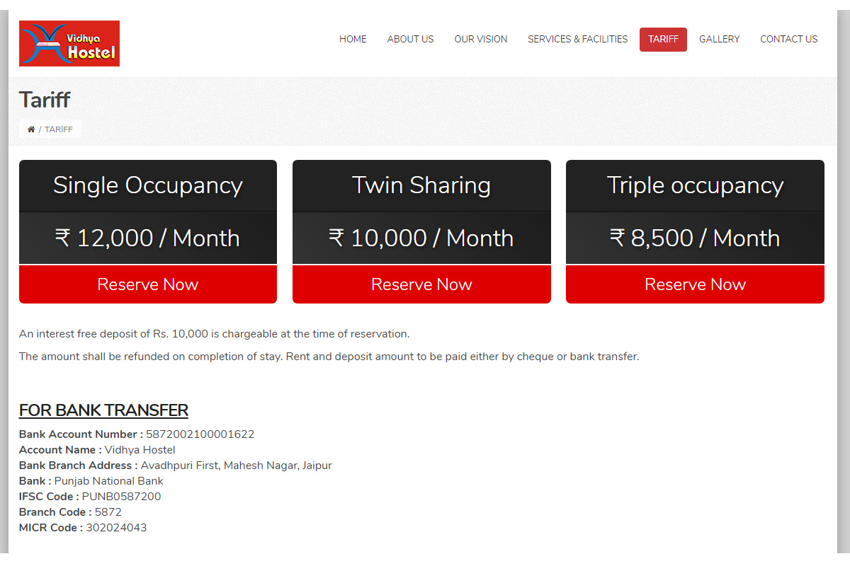I need a website for my Hostel where i would display my hostel rooms and tariff, it should have gallery(Video / Images), a contact us page a about us page, testimonials to display, but the layout should be as like it should display hostel images as background (changing) and features of the hostel should be highlight.